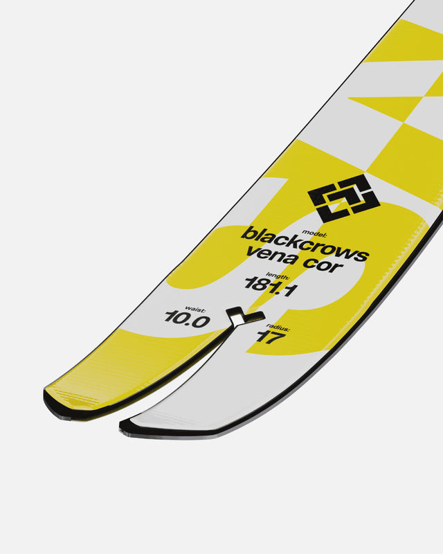 A new wild bird designed for all-terrain skiing, equally at home on the slopes as in deep powder, the Vena Cor is a ski that does everything, but better. With excellent float, a short radius, and a double rocker profile, this ultra-versatile ski thrives on all surfaces and in all conditions. Very playful and precise on the edge, it loves carving as much as it loves speed. Its DNA bears the mark of freestyle and encourages you to have fun with the terrain, while its freerider lift invites you to revel in deep or choppy snow. Its look, worthy of the blackcrows aesthetic, completes a very high-level resume for a ski that has all the makings of a legend.